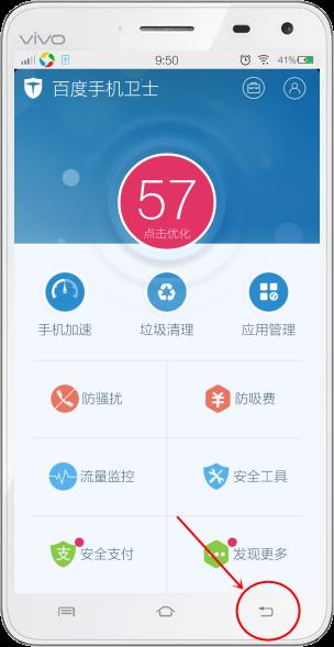 5.如果只是想退出百度手机卫士程序,首页按手机【返回】键即可