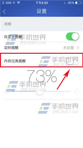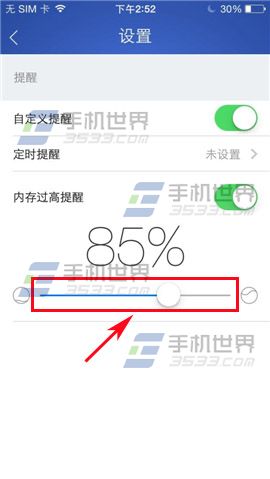 2)点击开启【内存过高提醒】,开启以后可以选择你要在百分之几提醒内存过高,在直线圆点左右拉动即可。(如下图)