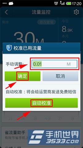 2)出现请设置归属地,精确校准流量,先点击设置归属地,出现省份,运营商,运营商品牌三个选项,选择完后点击保存并校准;
