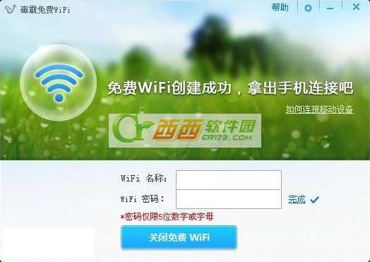 WiFi名称密码可以自由修改,若您的电脑以前创建过无线热点,则名称密码默认为上次使用名称。点击“修改”边的“小眼睛“,可以隐藏您设置的密码哟