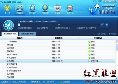 (2)扫描速度方面。毒霸2012还算不错,基本上保持在每秒240个文件上下,记得之前的杀毒软件能保持在每秒150个文件已经不错了。