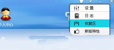 2、点击右上角的菜单按钮,选择“恢复区”。