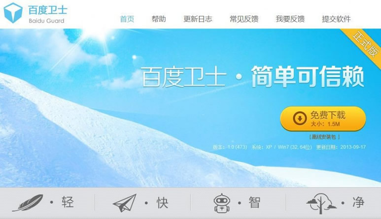 与此同时,百度还正式推出另一款安全产品“百度卫士1.0”版,作为百度杀毒的搭配性产品。据介绍,百度卫士具备电脑加速、系统清理、木马查杀、软件管理四大主要功能,还提供了高危漏洞修复、开机小贴士、换肤等特色功能。