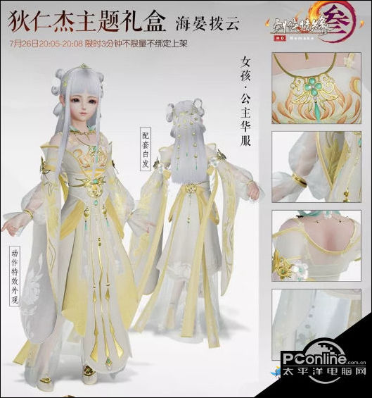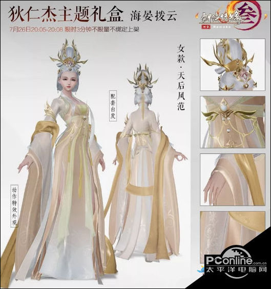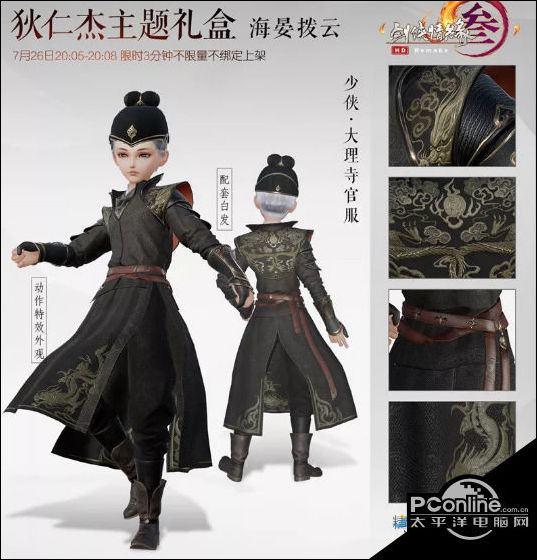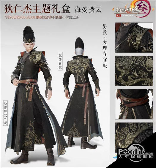 凡是购买限时3分钟不绑定款式的侠士,除了能够获得外装、白发与面挂外,还将额外获得一顶同款黑发,以及一柄为纪念狄仁杰所复刻的“亢龙锏·玄机”腰部挂件。