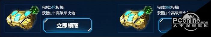 6.完成第5轮投掷,可领取1个高级军火箱;完成第9轮投掷,又可领取1个高级军火箱;