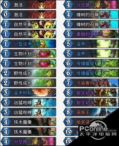 起手留牌最好是留生物计划,野性成长这些跳费卡牌,法术石因为能够升级也可以留着,激活和自然平衡都不必可以留了。起手有跳费卡,那么其他卡牌都可以看跳费情况来选择了,比如留下4费甚至5费的卡牌。