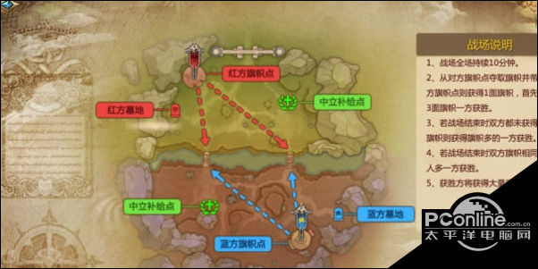 战场夺旗的战斗时间是十分钟,战斗期间是不能离开战场的