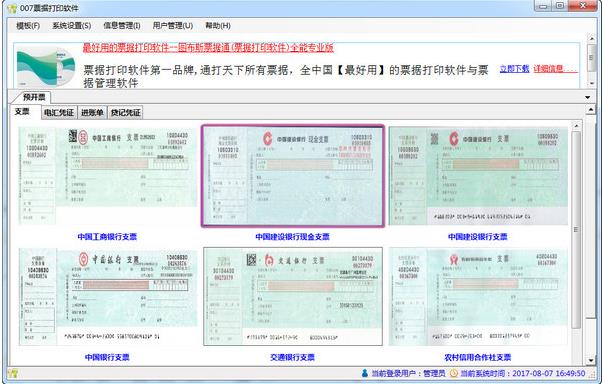 全面支持2017年最新版通用支票、进账单、电汇凭证、贷记凭证、信汇凭证等等银行票据样式;