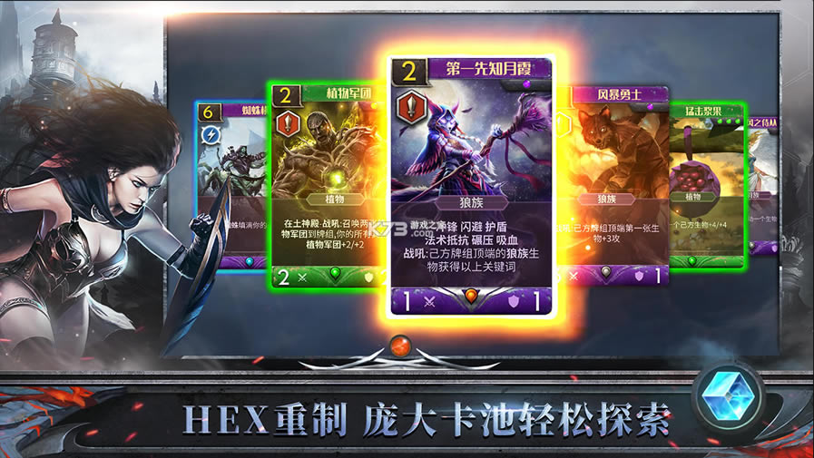 我们还原了HEX的四大种族设定,千张卡牌随意组,保证各路牌友的游戏体验感;继承了HEX的地形设定,三地属性三路战场加强策略性,解除牌友被毒瘤套路支配的恐惧,让游戏更具有策略性和公平性。