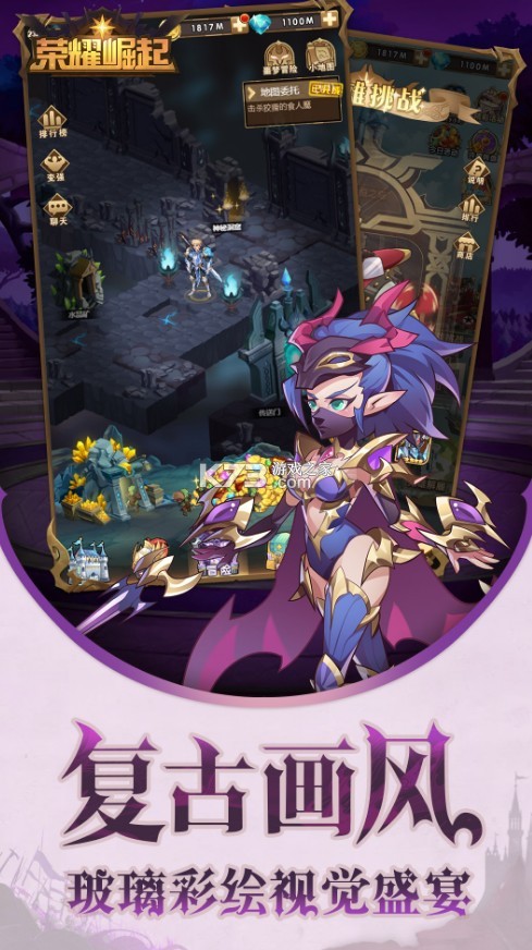 《荣耀崛起》是一款颠覆传统模式的放置卡牌游戏,将地城探索玩法完美融入放置游戏中,让玩家在享受挂机乐趣的同时又能体验到各种地图内的事件。同时还融入了多种休闲小玩法,让玩家在游戏中可以获得真正的放松。