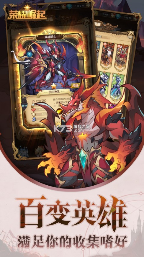 《荣耀崛起》在这里玩家们可以看到超百变的英雄角色了,能够领取各种英雄参与卡牌挑战哟。手游里面玻璃彩绘是一大特色了,本手游专属彩绘,让视觉方面更有感触,融入卡牌的战斗吧,给你更爽的卡牌操控。
