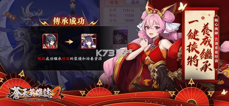 英雄天命,天下归一! 2020的三国RPG王者《苍天英雄志2》重磅来袭!在群雄割据的乱世中,你是承袭天意的「天命之人」,一念之间便足以撼动时局。本作建构于《苍天英雄志》多元的玩法上,进行革命性的升级:武将一键换阵,继承养成好容易;各国阵营混搭,策略组阵烧脑力;摆脱定时任务,拒绝束缚享乐趣;世界地图奇遇,真龙命格就是你。在最贴近人性的系统设计裡,享受纵横三国的爽快吧!《苍天英雄志2 ios版》是款以三国为题材的卡牌rpg手游,来到三国的纷争乱世,你需要抽取ssr顶级英雄卡组,结成三国联军最强势力,去摧毁拦在你面前的任何敌人。而游戏中登场的武将和文臣全部化身为性感美少女,让你的角色培养乐趣和收集乐趣更甚。