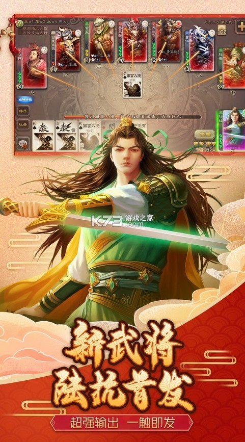需要你完美组建不同武将进行战斗的热血策略类手游,你将会回到一个群雄逐鹿的时代中,通过将手中的卡牌合理的搭配,来产生无限种特殊的组合方式,每个武将的能力都是完全不一样的,不仅拥有主动技能,也拥有专属的被动华丽技能,在瞬间就能尽情输出哦。