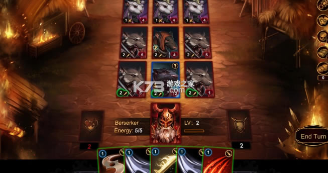 ●在击败怪物时获得经验值并升级。将新卡添加到您的牌组中以向前按。