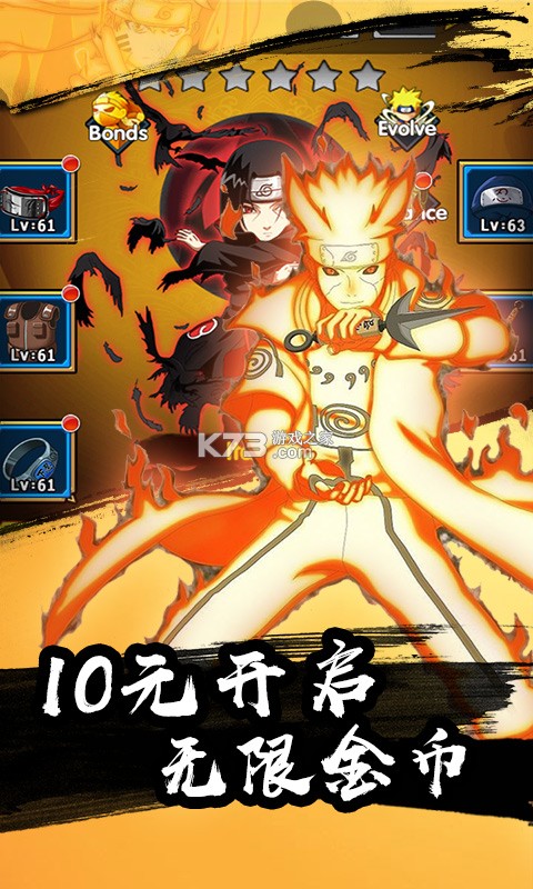 首充即送毕业上古忍者--羽村!10元即可开启无限金币特权!缘分羁绊丰富玩法,世界BOSS全新登场,超强忍者和你一起组建自己的最强小队!