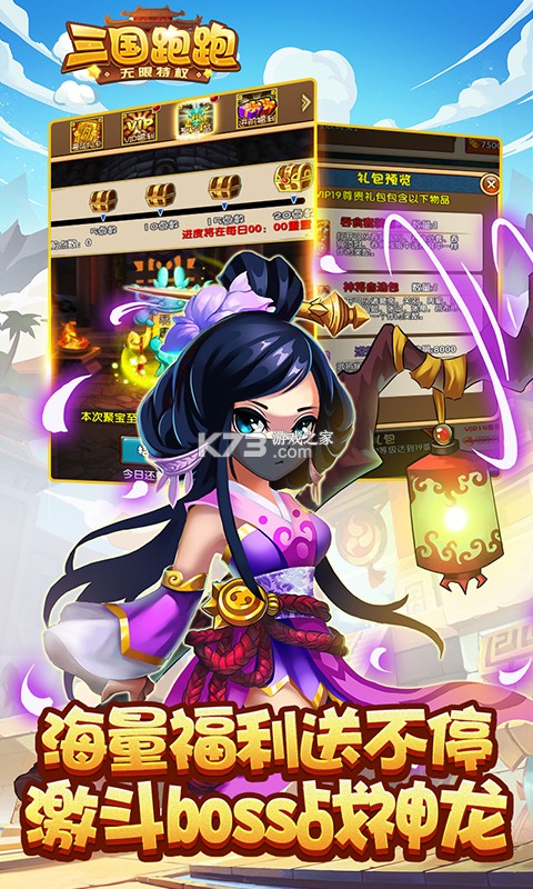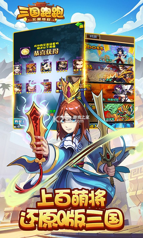 《三国跑跑-无限特权》一款Q版三国放置类卡牌游戏,游戏画面精致,武将Q萌,集合放置类游戏特色,轻松挂机领取高额福利;