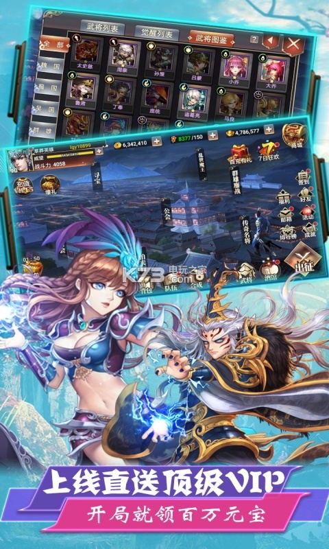 ★全新版本:重新定义福利手游。充值比例1:100,首充10元赠送逆天武将,养出一对极品夫妻!