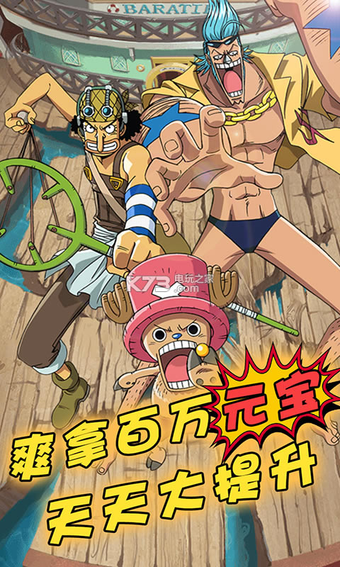 通过冒险、闯关等玩法强化自己的伙伴,在PVP对决中占据一席之地,脱颖而出成为最强海盗王。玩家在游戏过程中,不仅是作为主角组建海盗团从而踏上强者之路,也是对《ONE PIECE》动画的经典重温。