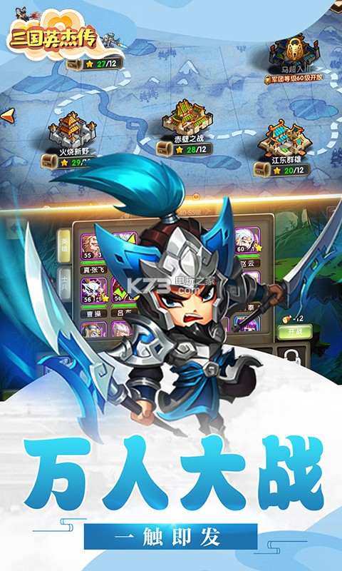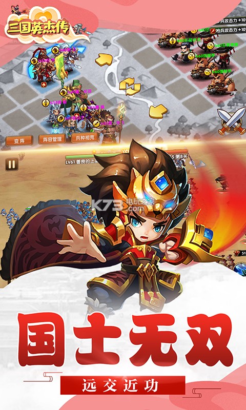 它的主要特点是军团作战,横版对冲,强调布阵策略和临场技能释放,让你淋漓尽致的体验指挥千军万马的大将之风,秒杀以往枯燥乏味的自动战斗模式。