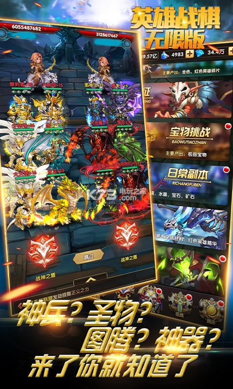 《英雄战棋-无限版》是以英雄无敌Ⅲ为估计背景策略放置类手游。欢迎领主,时隔多年,我们终于又在埃拉西亚重逢。正义得大天使,混乱得就投色,英勇得泰坦巨人等传奇英雄等待您得召唤。更有人族,亡灵,地下城,要塞等九大种族上百经典英雄可供挑选。英雄无敌Ⅲ经典地图再次重现,白人同屏竞技抢宝,神秘商人等你邂逅,传奇英雄炫酷屌炸,幻彩英雄从天而降。