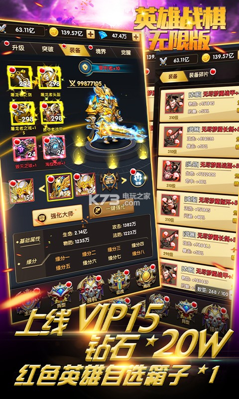 ★上线满V;钻石*20W;红色英雄自选箱子*1。