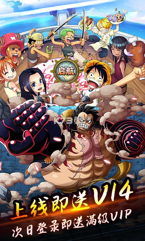 ★上线送V14,钻石28888,金币588w,次日送满V!登陆送新世界乔巴,黄金梅里号!
