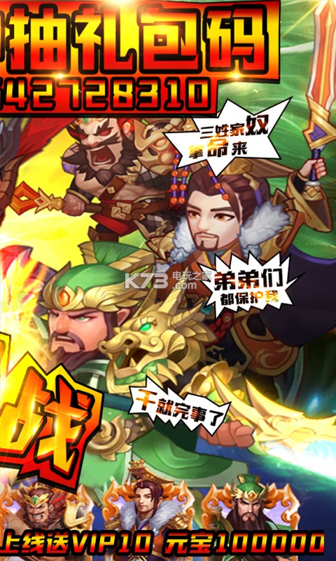 ★上线送VIP10,元宝*100000,500W金币,还能领取百抽礼包码(记得平台领取礼包码哟)!抽到手抽筋啊!