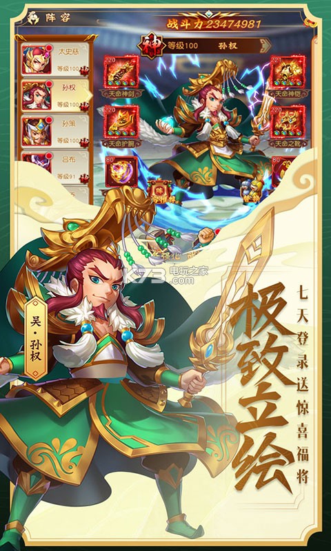 ★连续登录7天上线即送神将(曹操、孙权、刘备三选一)!