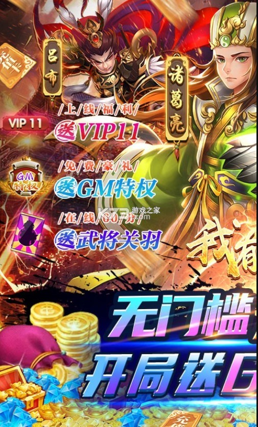 《我有上将GM特权版》是一款三国3D动作卡牌游戏,极致的动作特效,来带你体验一下不一样的三国世界,还有军团争霸,百人同屏大乱斗,GM特权,每日都能白嫖福利,7日登陆无限送充值卡。