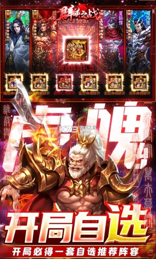 以经典三国题材为原型所打造的策略国战手游,在这里你将见到许多经典的人物角色。以群战玩法为核心。