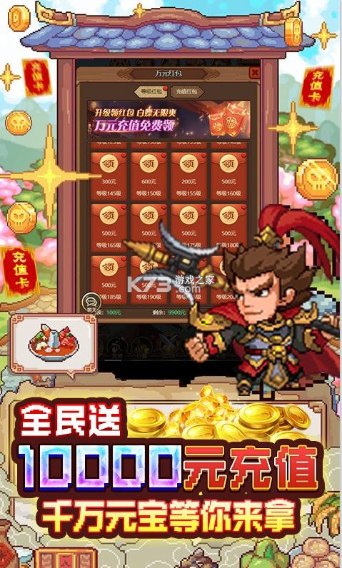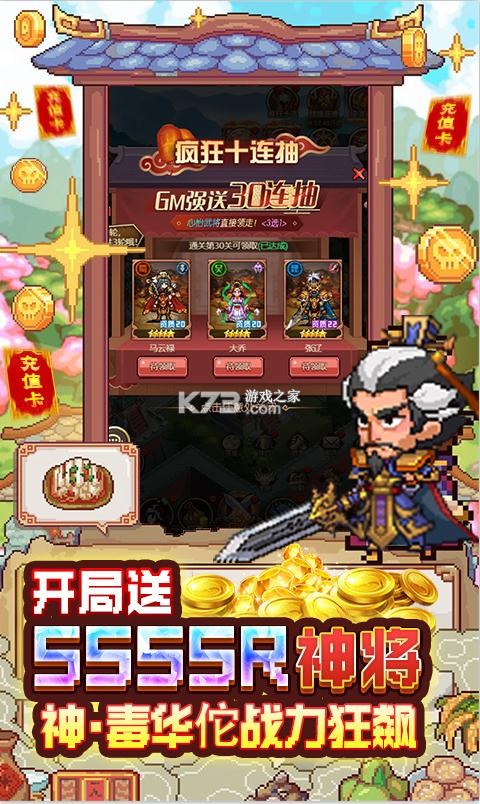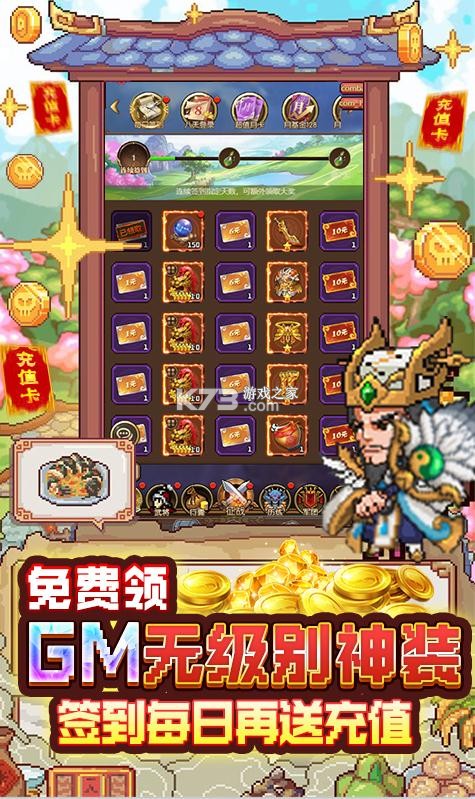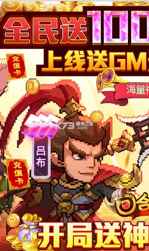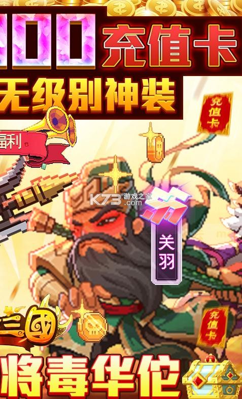 暑期必玩,共赴狂欢!全新放置像素卡牌《回合三国-送神将万充》,全新魔神将携手史上最强福利强势来袭!开局送GM神装全套礼包+VIP10+38888元宝+200万金币。