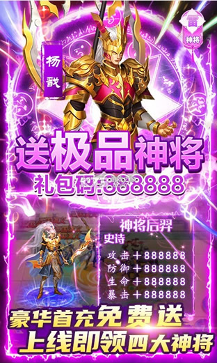 3.充值比例1:10000,首充双倍!连续登录即可领极品神将!