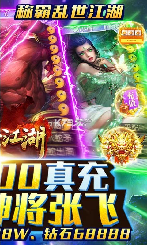 1、上线送VIP8、送30000真充称号、宝石*68888,铜钱*88W