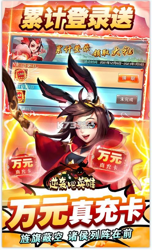 《逆袭吧英雄》自由走位谋定天下轻松收集三国名将,打造最强的阵容,轻松国战随时攻略城池问鼎中原,送千抽和万元真充卡,融入了卡牌的元素,你扮演的是身处于乱世的英雄,刀光血影弥漫着硝烟,福利豪礼不间断。