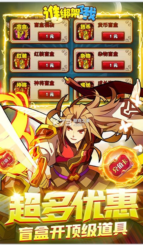 《谁绑架了我》超炫酷的三国世界,演绎全新的Q萌世界,登录即可上线领取gm的福利,玩法超多,细腻的风格,超多的福利,等着你来入手,超多关卡战役等你来挑战随心搭配阵容灵活的挑战,送神将和满v,福利不断。