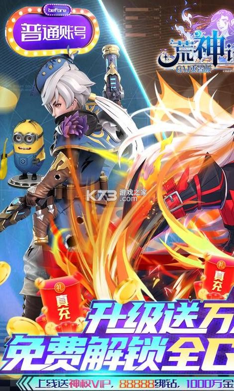 《荒神记-全民GM账号》是一款高自由度大型MMO魔幻游戏。上线立送神权vip、88888绑钻、1000万金币、无门槛649元真充卡、再送千元真充卡!
