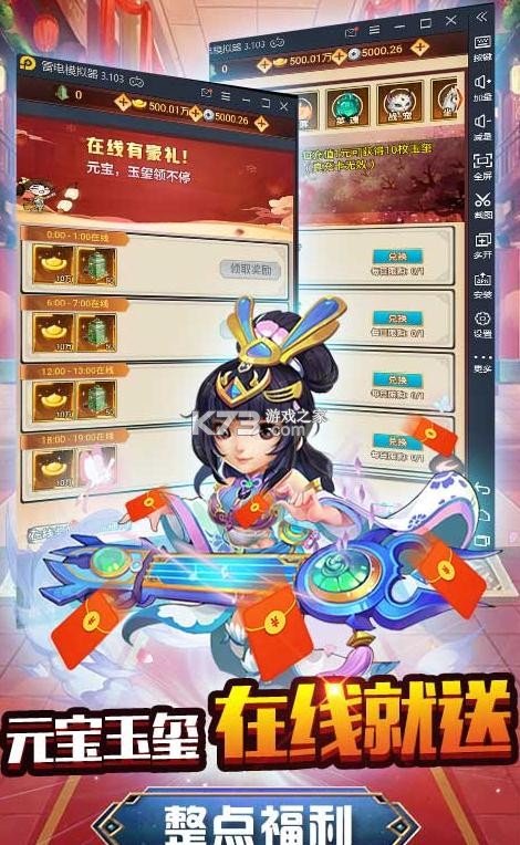 累计登陆送十万元充值卡,整点在线送玉玺;全新开局定制套餐,为您量身打造,养成冲榜,快人一步。