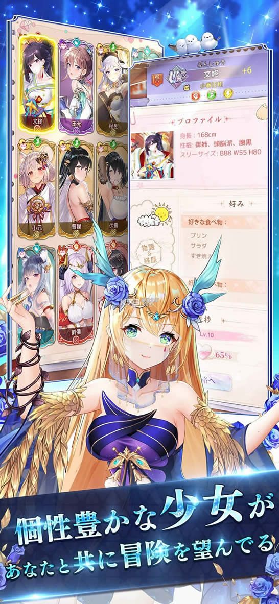 《少女回战》是一款由 ONEMT 推出的全新放置美少女游戏 2.0。本作故事发生在东汉末年,「曹操」「蔡文姬」「黄月英」等耳熟能详的角色,将化身美少女,与玩家一同对抗异世界的敌人。
