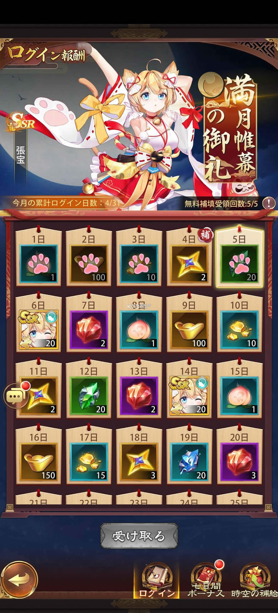 每天登录即可获得溢出的奖励