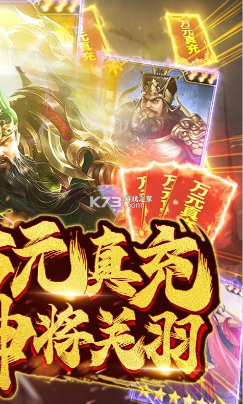 2、充值比例1:1000,首冲高达5倍,桃园结义刘关张,群雄争霸,一统天下,历史由你创造!