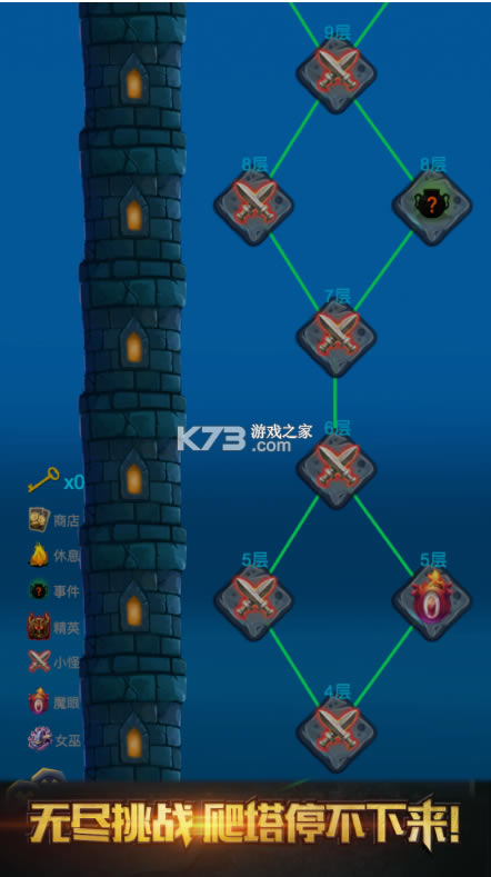 停不下来的冒险,一层一层挑战魔塔的各种事件和怪物!