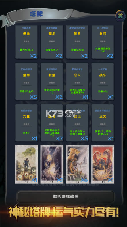塔牌总共有22张,每一张都有独特的冒险属性。