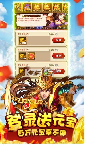 ★首充1:3000,首充即送神将,全套橙装,还有280充值卡!开局人人都是大佬!