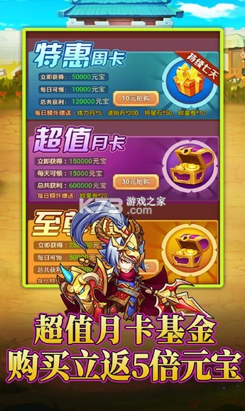 《超神挂机送千元充值卡版》在这里建立三国联盟开启你的热血三国之战,轻松作战战斗,极品的游戏装备都是你的,挂机也可以轻松升级,豪华的游戏奖励可以让你的角色走的更远,从一个小的国度开始逐步的壮大,吞并其他的国家逐步的成为最强的三国王者,还可以冒险战斗,挑战你的胆量.