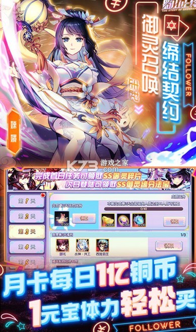 ★1元宝买体力,加速升级,玩法全开,黄金月卡超值回馈,每天管够1亿铜钱!