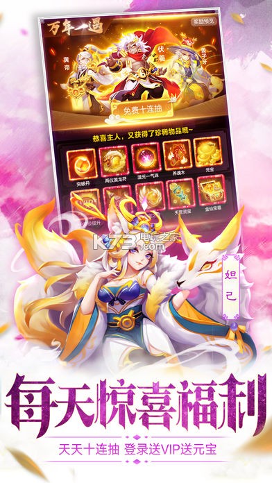 首周送40000元宝,次周送最强神仙(唐僧/镇元大仙/刑天/黄帝),再送超强装备(山河社稷图/天罡神戟),免费升级会员(VIP2)。第3周开始,平均每天可从游戏内获得至少1000元宝!不充值也玩得毫无压力!