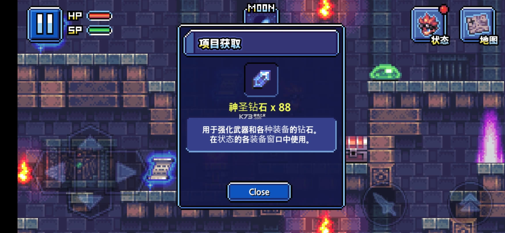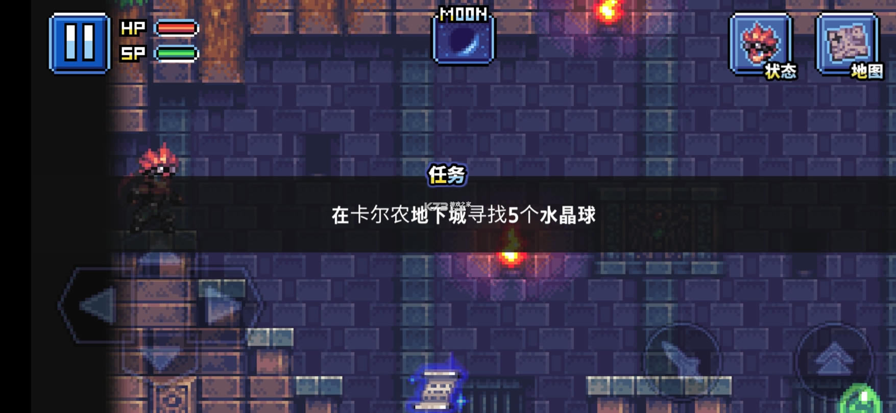 4、控制小勇士进入地牢中继续战斗冒险,消灭前方的敌人并躲避各种机关和障碍物。