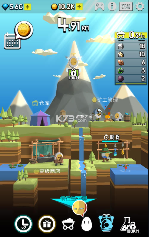 矿洞越往下越难挖掘,玩家需要购买更强大的挖掘机和矿工来进行挖掘!