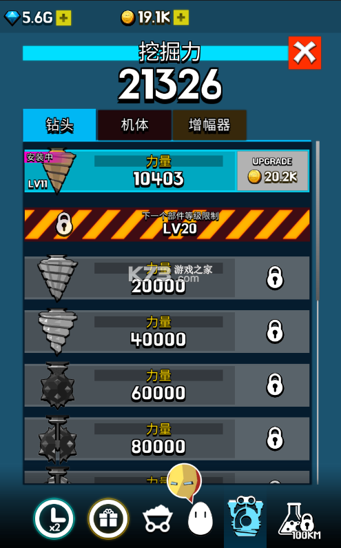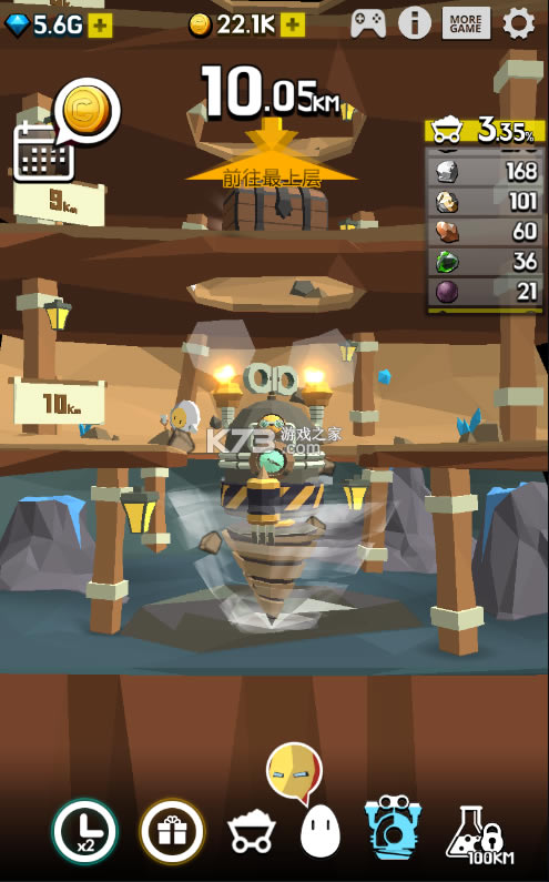4、玩家需要赚取更多的金币来升级自己的钻地机,加大钻地机的功率赚取更多金币。