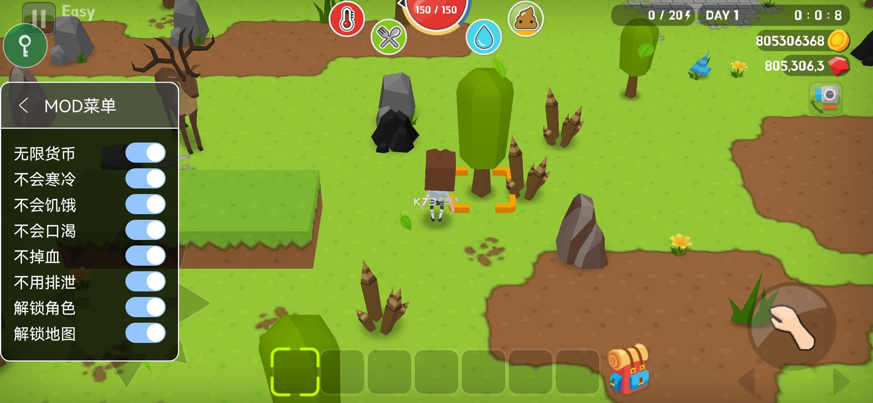 生存大世界无限金币钻石版(Mine Survival)是由Wildsoda厂商发行的一款沙盒冒险经营类游戏,它不同于“饥荒”、“方舟”和“都市天际线”这种大型生存挑战游戏,这款游戏操作简单对新手有着良好的态度,让新人也可以充分感受到游戏体验。在游戏中玩家需要在有足够水源得地方居住,通过收集、采集和工具的制作一步步建造属于自己的家园,硕大的地图充满了未知性,不同的材料和怪物遍布在地图的某些角落等待玩家的探索。面对这些未知的危险玩家需要加速“文明”的发展让你拥有更多的先进装备来支撑你的冒险,需要注意的是晚上会有僵尸和其他怪物靠近,玩家必须时刻保持清醒的状态不可以掉以轻心,不然一不小心就可能被危险的生物夺走你的生命。另外,游戏中还有各种难度级别不同的挑战地图供你选择,新鲜道具的调用也是成功求生的关键所在哦,有喜欢的玩家可千万不要错过!